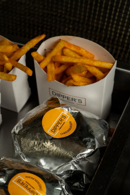 Medallón, lechuga, tomate, cheddar, cebolla, salsa Dipper´s.